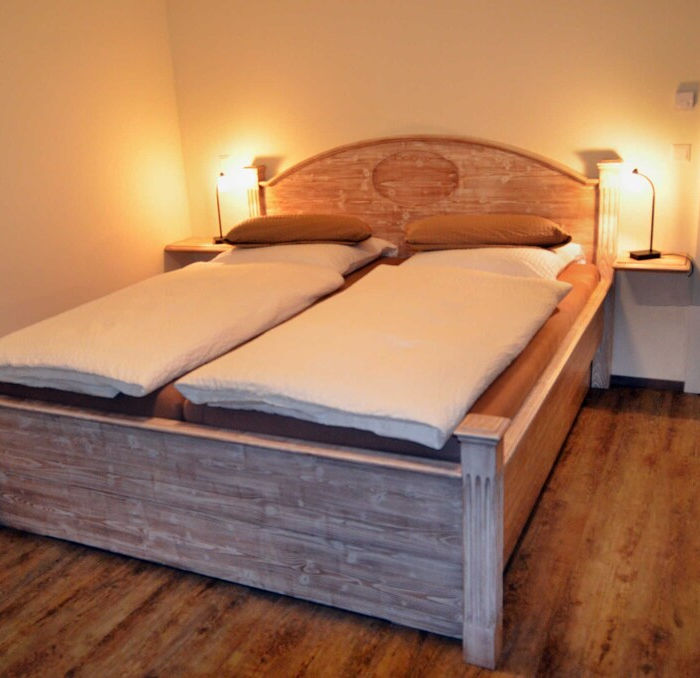 The bedrooms of Villa are all large and comfortable with en suite bathrooms. Each bedroom has its own Veranda / Balcony with wonderful views over forest, mountains and the closeby situated Petersbründel Ski slope.The beds are 220 cm (7.22 feet) long and 200 cm (6.5 feet) wide with extremely comfortable matraces. Large wardrobes offer plenty of space for all your belongings. The furniture is hand carpentered from local wood.